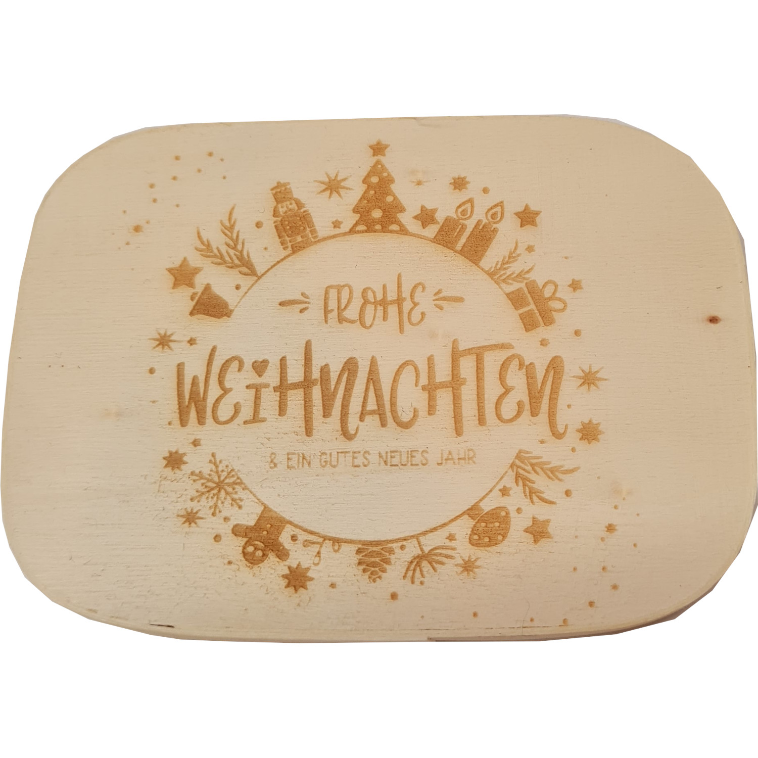 100g / 8 Stück köstliche Butter-Spekulatius Logokekse mit verschiedenen schönen Prägungen aus unserem "Weihnachts-Set" in hochwertigem, klimaneutralem Blockbodenbeutel verpackt und in kompostierbarem Keks-Kästchen verschlossen mit Holzdeckel. Premium-Gravur: "Frohe Weihnachten". Das perfekte "kleine" Geschenk in Premium Handwerksqualität.